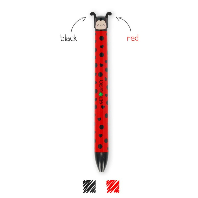 L’horloge fait tic-tac... et le stylo click-clack ! Ce n’est pas une comptine, mais la simple vérité : avec le Stylo à Bille à Deux Couleurs - Click&Clack - Ladybug de Légami, il suffit d’une simple pression pour changer la couleur et choisir celle que vous préférez. Encre rouge et noire
