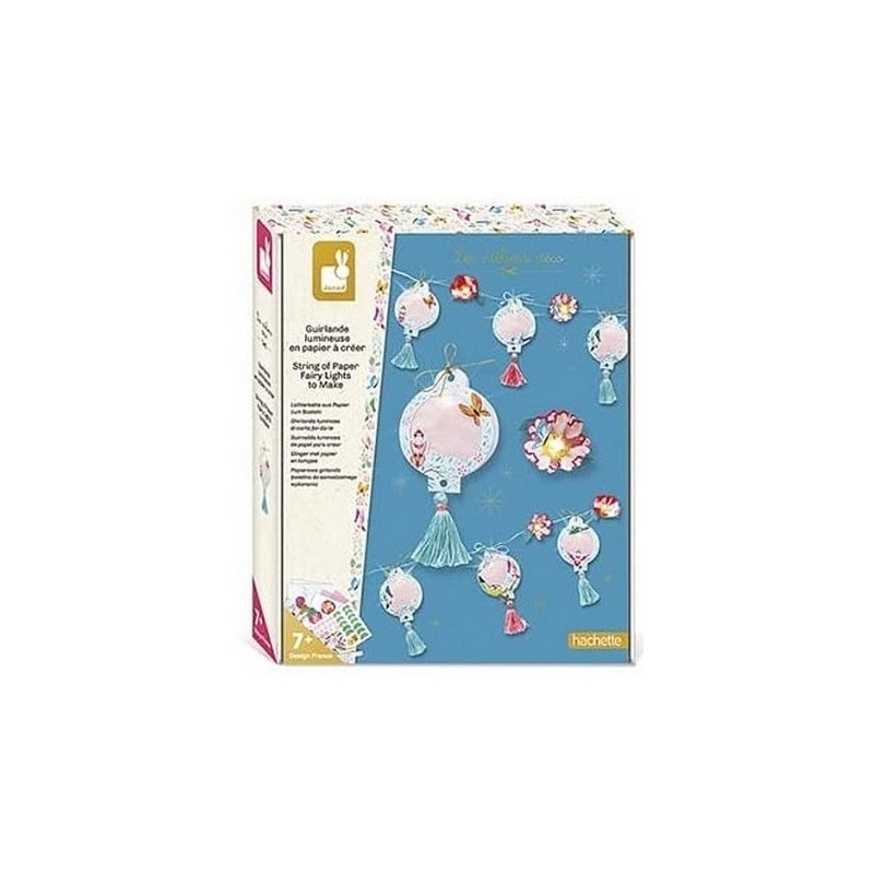 Avec ce kit créatif de la collection Les Ateliers du Calme de Janod, voici une Guirlande Lumineuse en Papier à Créer pour la suspendre et décorer la chambre.