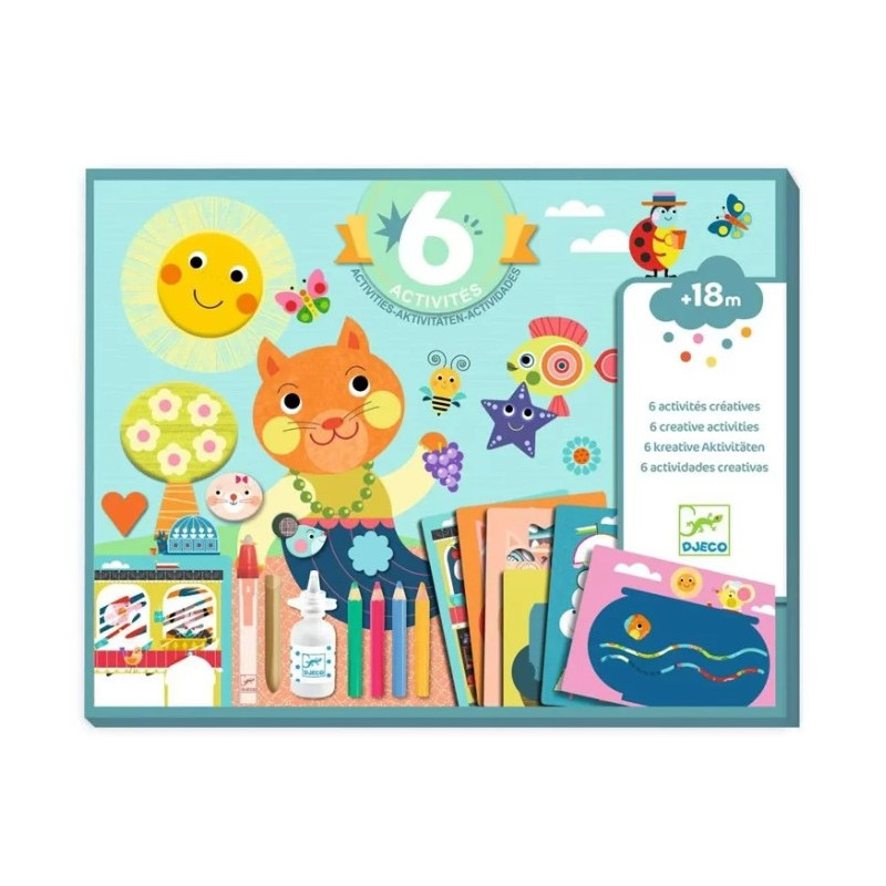 Découvrez le coffret Le chat et ses amis 6 activités créatives de Djeco, un coffret de loisirs créatifs avec des heures de créations pour les enfants dès 18 mois.
