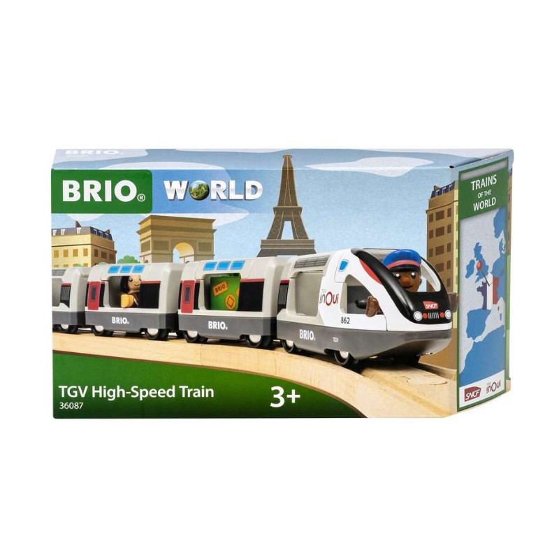 Voyagez de Paris jusqu’à la Côte d’Azur à bord du Train TGV INOUI SNCF, de la Collection des Trains du Monde. Fidèle à un vrai TGV, ce train grande vitesse est le plus long train du BRIO World et peut accueillir jusqu’à 6 personnages.