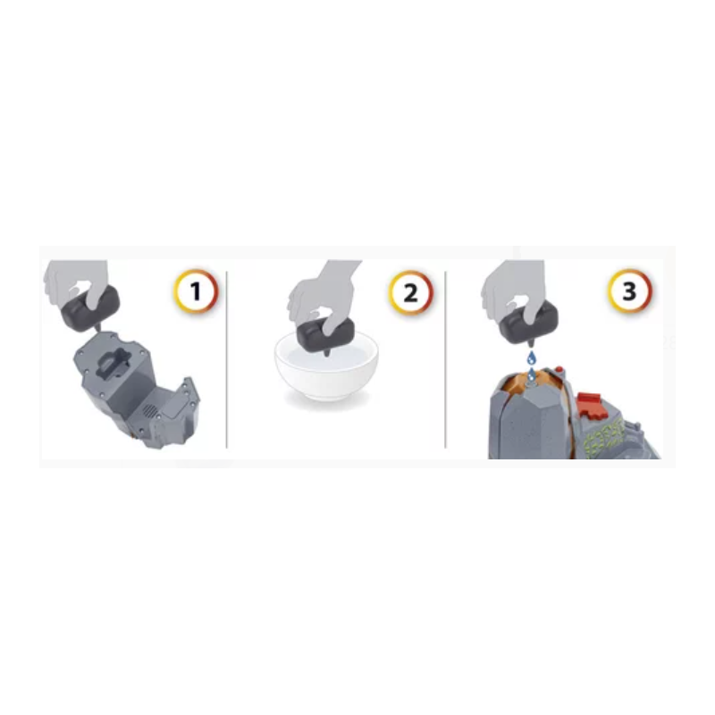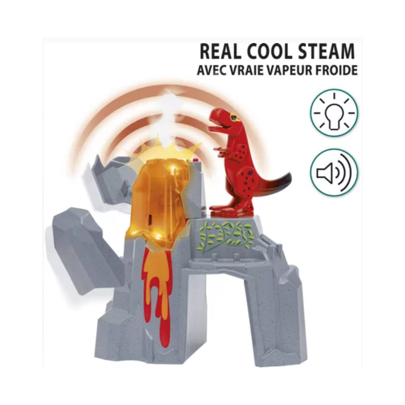 Réveillez le volcan : appuyez sur le bouton au sommet pour activer la lave, les sons du volcan et la vapeur d'eau froide (sans risque pour l'enfant) provenant du volcan.