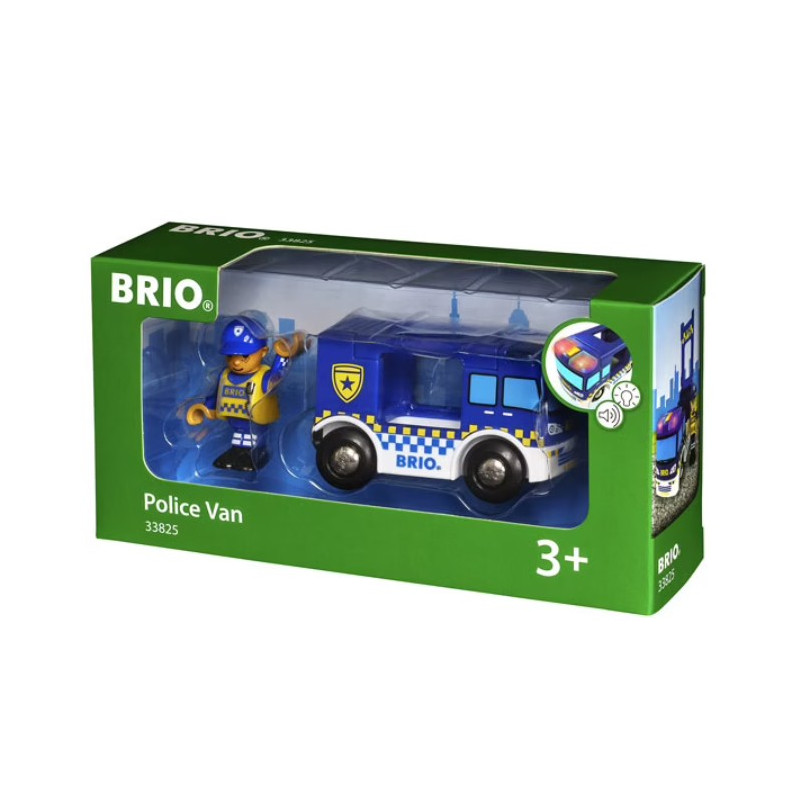 Voici le camion de Police Brio, son et lumière pour inventer de belles histoires de trajets quotidiens peuplés d'anecdotes pour vos passagers.