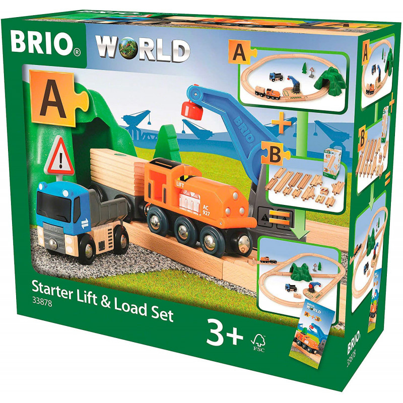 Découvrez le Circuit Transport Frêt Pack A, un coffret complet 19 pièces de Brio pour les enfants à partir de 3 ans. Chargez et transférez les marchandises du train au camion !