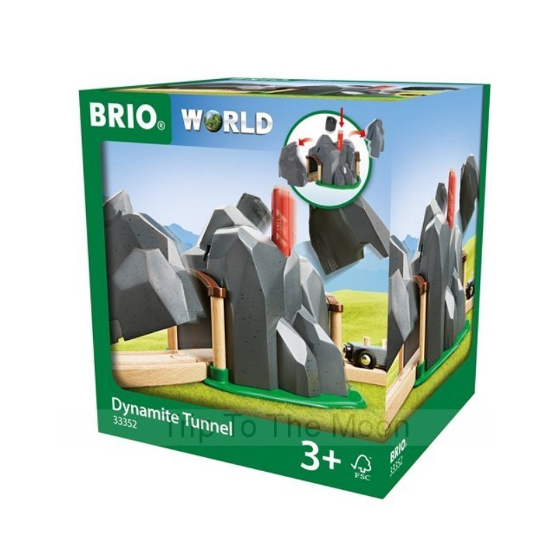 Voici le tunnel dynamite de Brio : frayez-vous un passage dans la montagne en introduisant la dynamite dans la fente et observez les parois de la montagne tomber sur le côté. Inclut un wagon avec son chargement de dynamite aimanté.