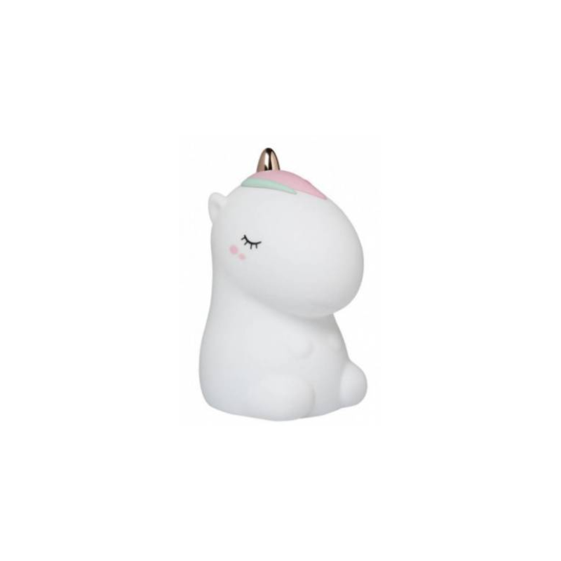La veilleuse Little L Licorne Cosmo est toute douce et toute souple. Il suffit de la toucher pour changer pour découvrir les différents effets de lumière, lumière blanche à lumière colorée.
