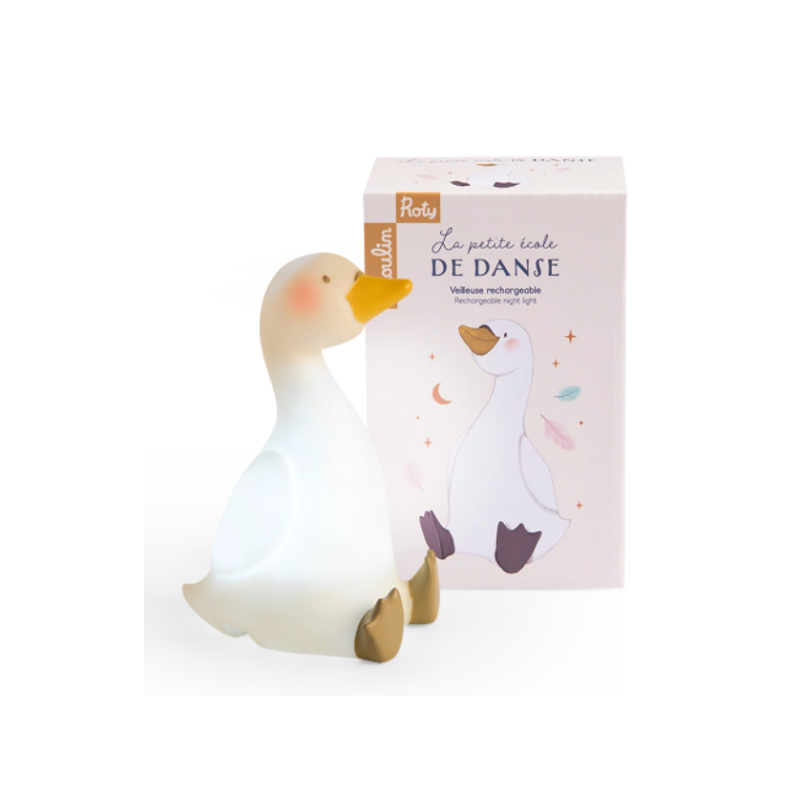 Découvrez la veilleuse cygne La petite école de danse de Moulin Roty: cette veilleuse nomade aidera bébé à voyager au pays des rêves en éclairant la chambre de sa lumière douce et tamisée.