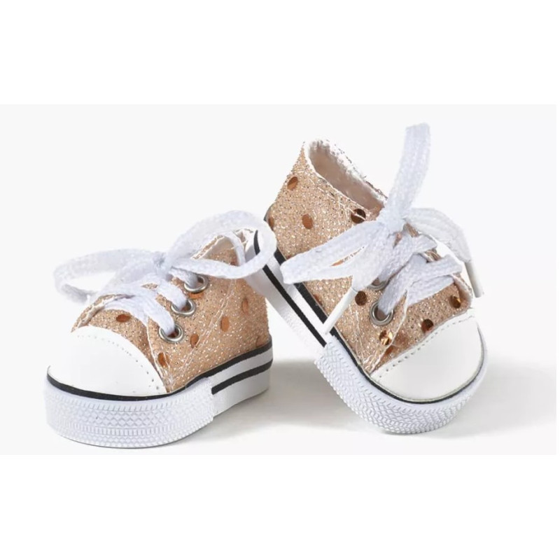 Chaussures à lacet Komvers doré à séquins pour poupées Minikane Gordis 34 cm et poupées debout 37cm.