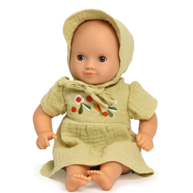 Avec sa robe et son béguin en gaze de coton brodée de la tenue Lili Blum de la collection Poméa de Djeco, votre poupons de 28 à 34 cm aura fière allure lors de ses sorties en poussette.