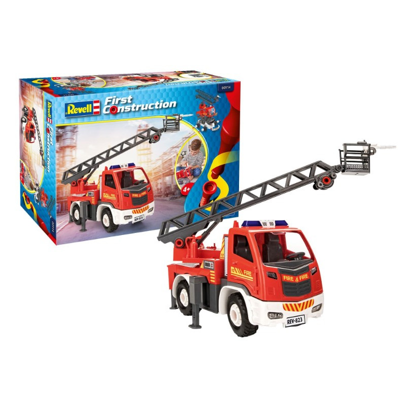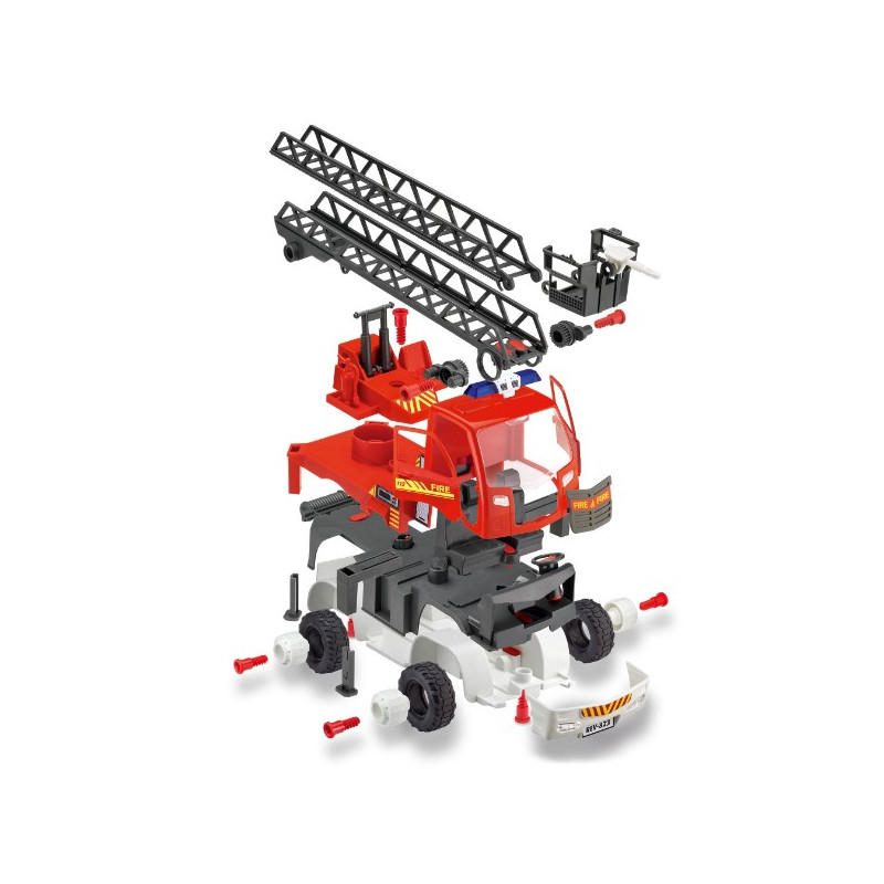 Ce camion de sapeurs-pompiers 1ère construction de Revell est l’alliance parfaite entre le plaisir de construire et de jouer ! Les 48 composants robustes et les vis jointes permettent de construire pas à pas une voiture à échelle avec de nombreuses pièces mobiles, une échelle rotative télescopique (60 cm) et de nombreuses fonctions.
