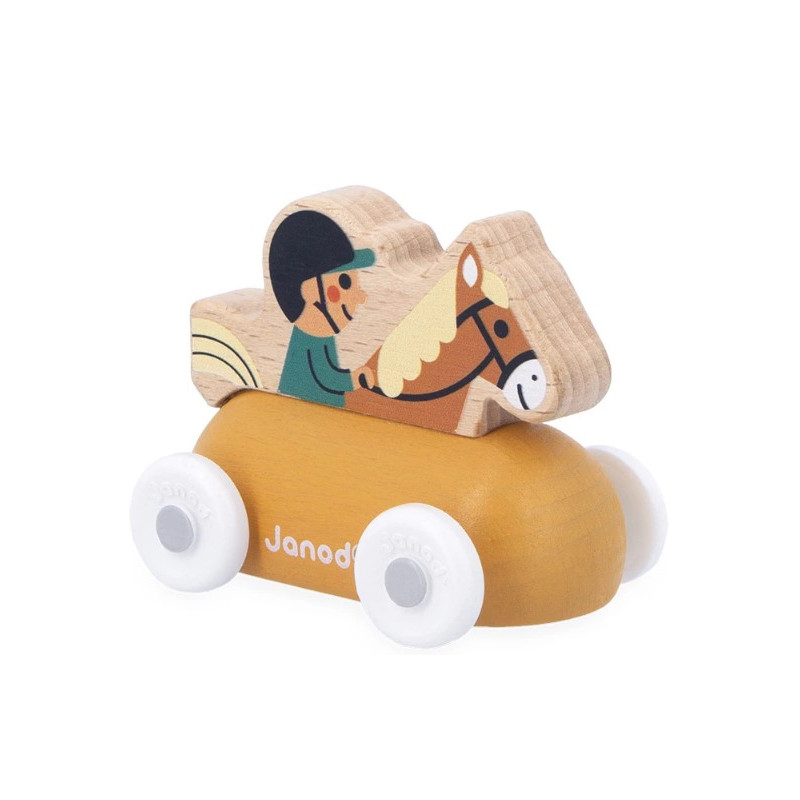 Découvrez le cavalier de la collection Cross Roads de Janod, une petite voiture en bois appartenant à l'univers "La Vallée Blanche". Parfaite pour les enfants dès 2 ans, cette voiture à pousser sur le thème de l'équitation est un compagnon idéal pour développer leur imagination.