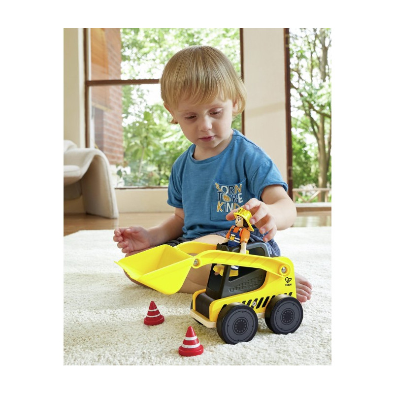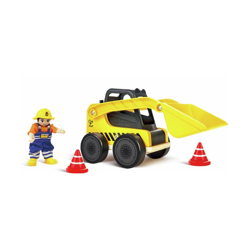 Conçu avec un design moderne et épuré, ce bulldozer robuste est équipé d’une pelle large et flexible, permettant aux petits constructeurs de charger et décharger à volonté, comme sur un véritable chantier. Ce coffret comprend un bulldozer, une figurine d’ouvrier du bâtiment avec bras et jambes mobiles, ainsi que deux cônes de signalisation en bois, parfaits pour recréer des scènes de chantier réalistes. Son espace de rangement intégré permet de ranger facilement les accessoires une fois le jeu terminé.